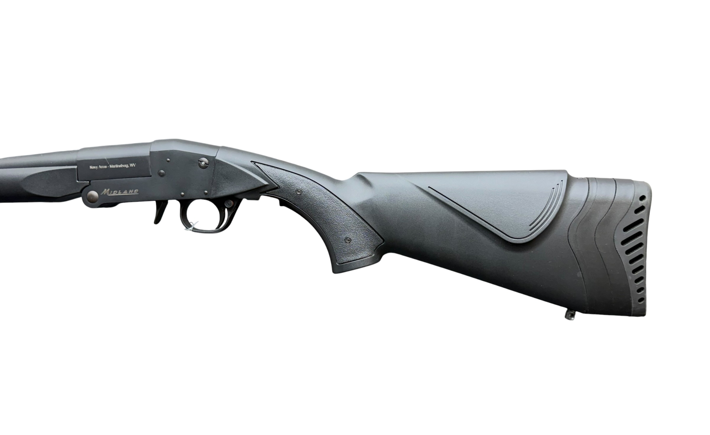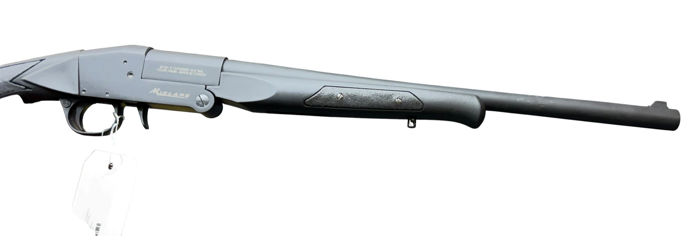 For sale is a brand new Midland single-shot shotgun chambered in 20 gauge. This is a Turkish-made break-action shotgun featuring a blued barrel, synthetic stock, and modern screw-in choke system for excellent versatility.