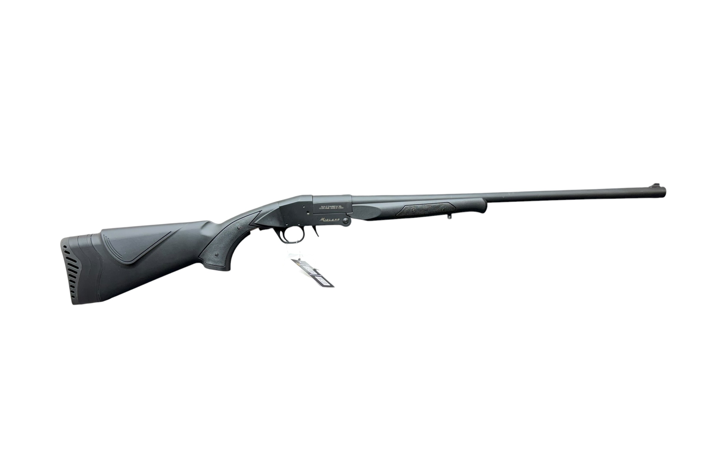 For sale is a brand new Midland single-shot shotgun chambered in 20 gauge. This is a Turkish-made break-action shotgun featuring a blued barrel, synthetic stock, and modern screw-in choke system for excellent versatility.